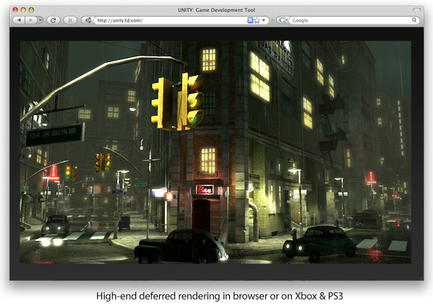 Among a host of updates in this release are major updates to Unity’s rendering capabilities, its physics features and significant optimizations to its core systems to make targeting multiple platforms easier than ever for developers. For improved performance and fidelity in its rendering, Unity now includes fully integrated licensed technology from Illuminate Labs and Umbra Software. Used in games such as the highly regarded Mirror’s Edge, Illuminate Lab’s Beast lighting software provides Unity developers with a complete global illumination solution for photorealistic scene lighting. Ensuring exceptional performance for games with large, open scenes and complex geometry, Umbra’s occlusion culling software is also fully integrated in Unity 3.0. Both Umbra and Beast are included in Unity Pro at no additional cost.
