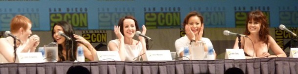 The panel begins as Zack Snyder is introduced on stage. Now there is one thing you need to understand, the man is a revolutionary visionary, but he cannot speak if his life depended on it. 80% of the time his answer to a question is “Awesome” or if he does start talking he never actually answers the question and just moves on. Next Emily Browning, Vanessa Hudgens, Jamie Chung, Carla Gugino, Abbie Cornish, and Jena Malone are all introduced on stage. We get some Q&A from fans but one thing is finally set straight after all these years….Zack Snyder likes women. This got a huge laugh from the audience since Zack said it was put into question after he did 300 and made those guys look a little too good.