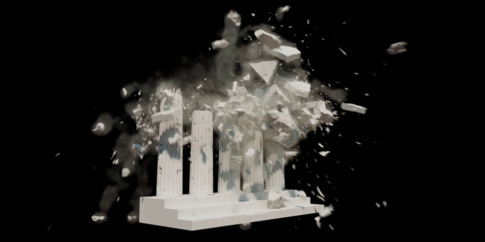 Artists can pre-fracture geometry using the new Boolean nodes, using a range of methods including Voronoi fracturing, then break the fractured pieces apart using rigid body dynamics.