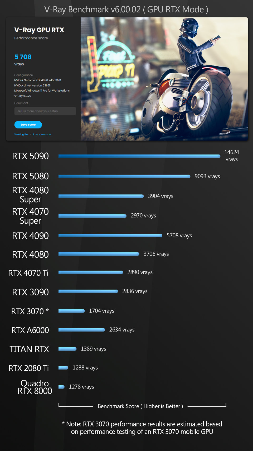 Chaos Vantage Vantage follows a similar pattern to Unigine, Unity and Unreal Engine. Both the GeForce RTX 5090 and the 5080 take a commanding lead over all the previous-gen GPUs.