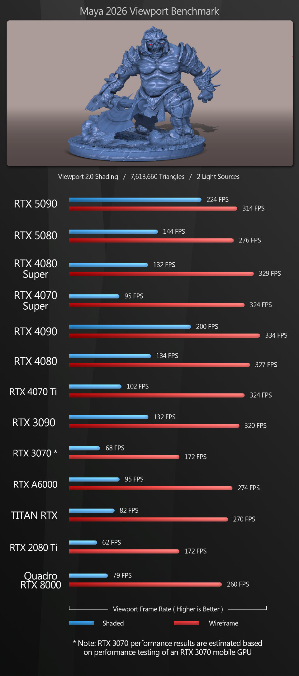 Modo With Modo, both the GeForce RTX 5090 and 5080 generate very low frame rates in shaded mode. In wireframe mode, the 5090 does quite well, only losing out to the 4090, but the 5080 posts the second-lowest score of any of the GPUs on test.