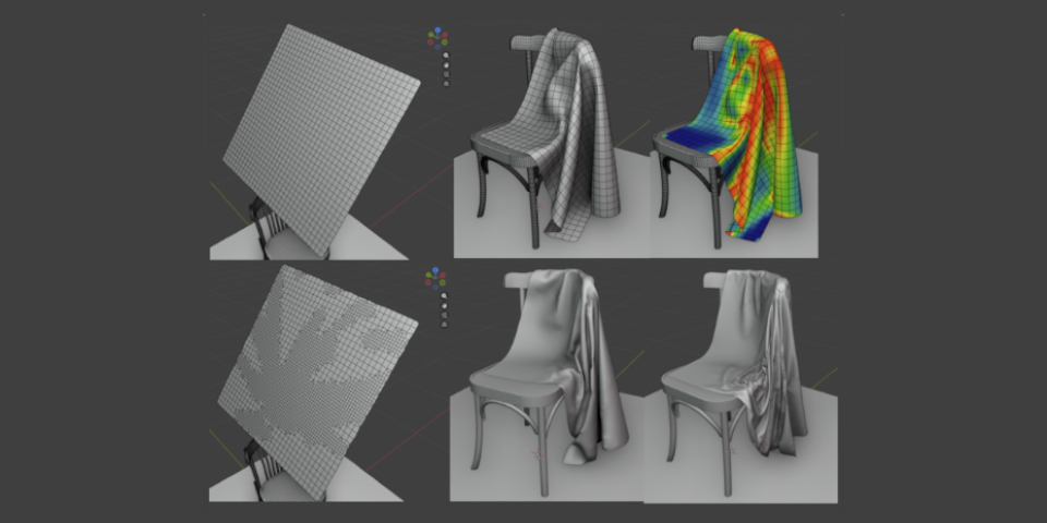 Users can control the result by adjusting material and simulation properties, and there are presets for common material types like cotton, denim, leather, silk, wool and rubber.