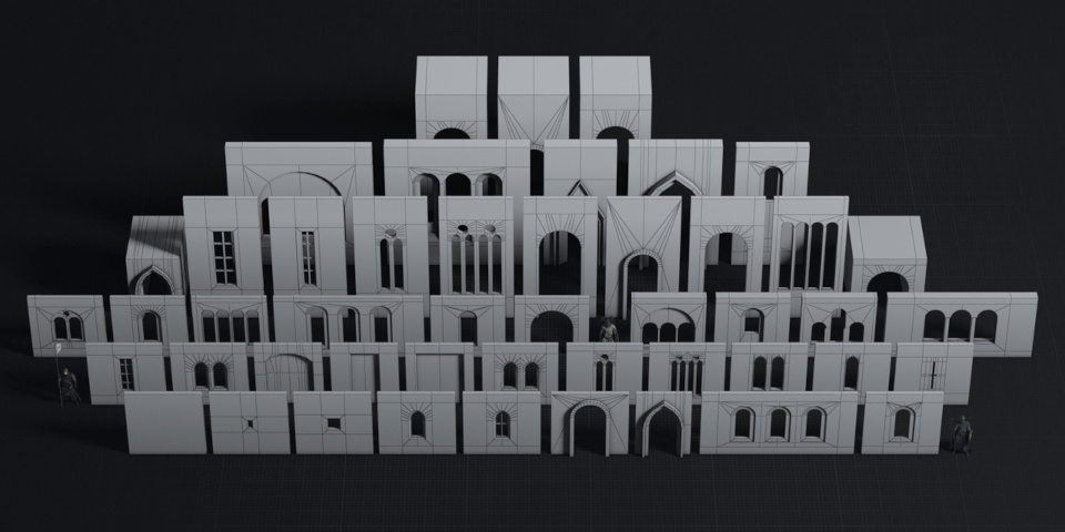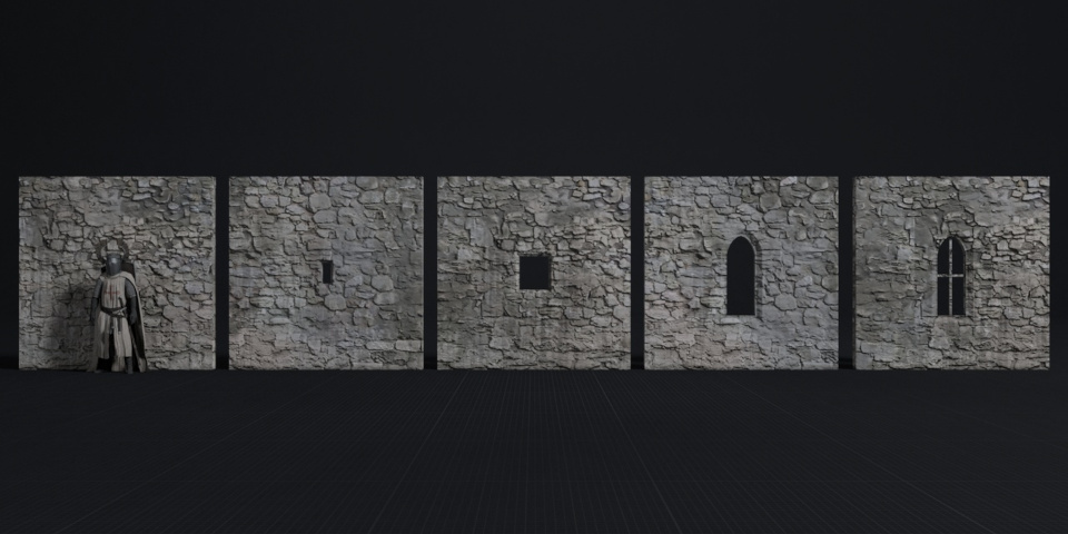 The Medieval Modular Wall Pack comprises 48 wall parts for kitbashing 3D buildings.