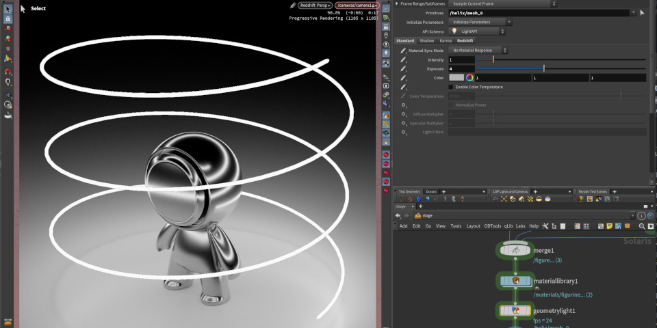 Houdini users get support for the Geometry Light LOP and Render Statistics panel in Solaris, Houdini’s shot layout and look dev environment.