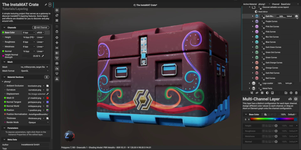 The core application, InstaMAT Studio, gets a new system of Curves brushes, support for radial symmetry painting, automatic stroke smoothing, and a lot of new mask types and filters.