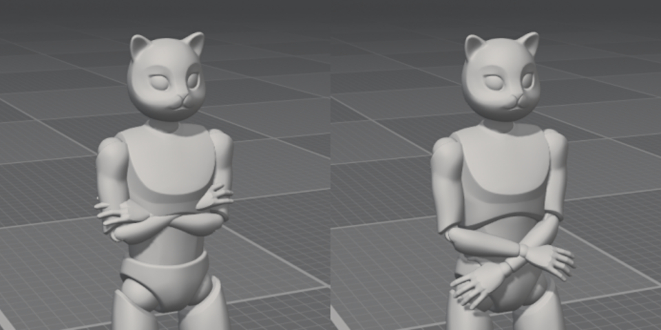 Key poses can be quickly established for a character via the AutoPosing system, which lets users reposition a small number of joints, and have Cascadeur take care of the rest of the body.