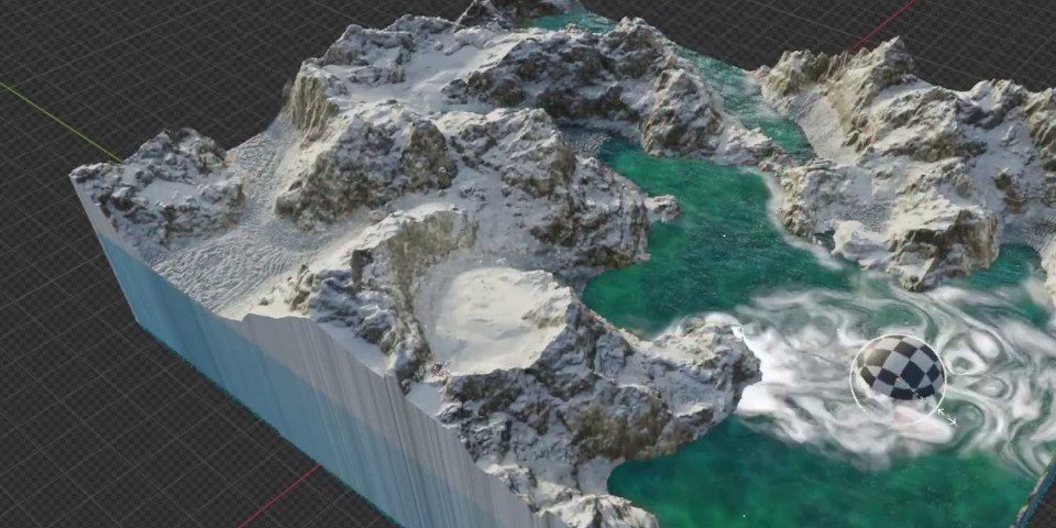 Lightweight 'terrain-aware' tool generates realistic water flow and foam around the edges of terrain. Works with Eevee and Cycles.